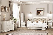 With elegant curves throughout, it complements any bedroom decor with grace and style.